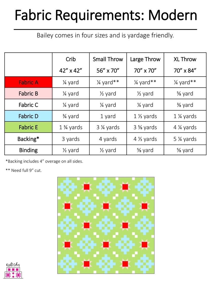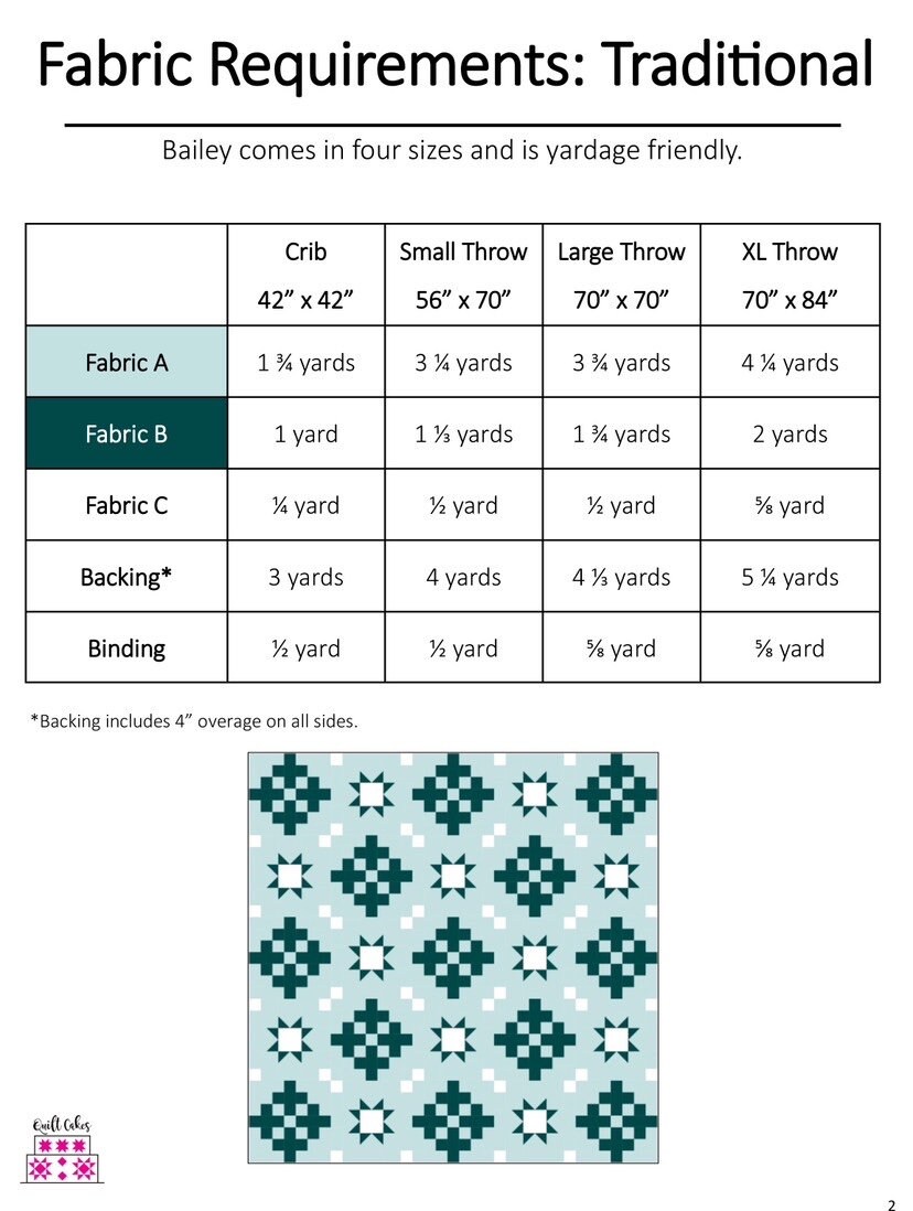 Copyright QuiltCakes 2022. Pattern cannot be reproduced or sold, duplication is prohibited. Quilts made using the Bailey pattern may be sold as long as credit is given.