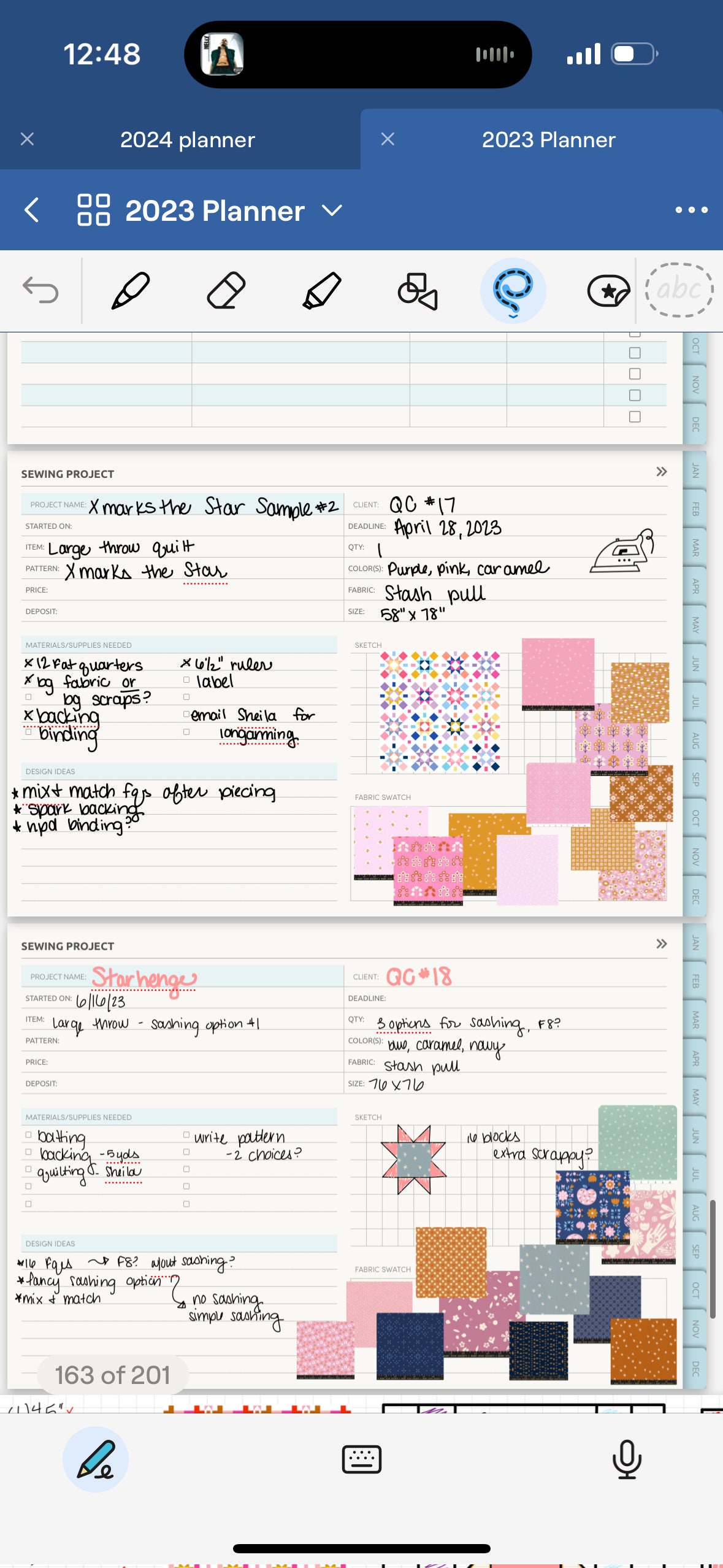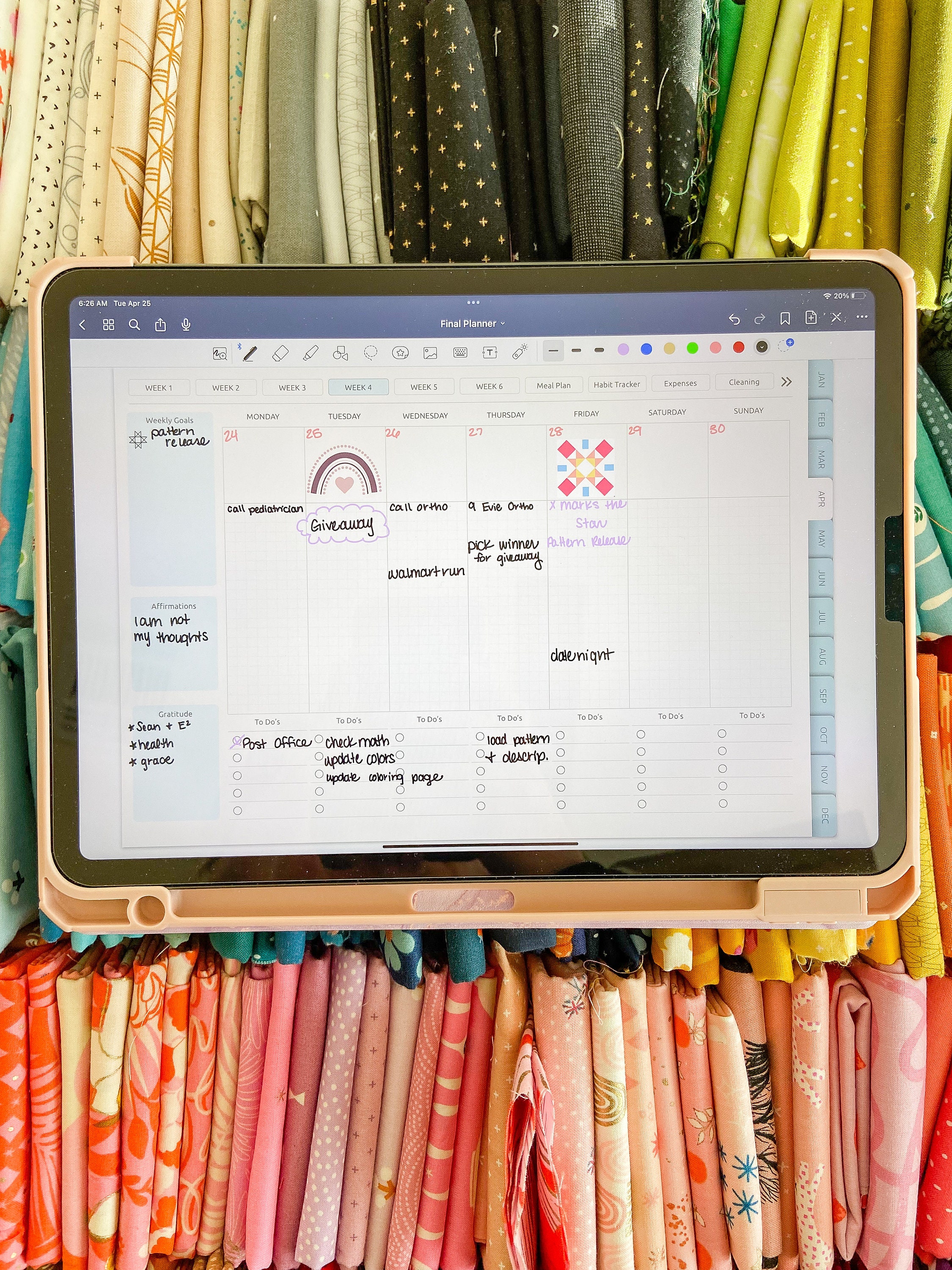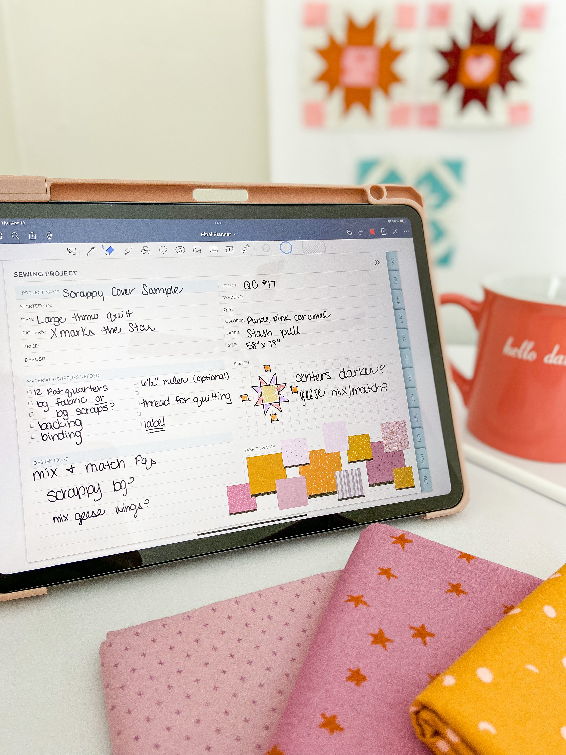 The planner includes a comprehensive project management system that enables you to keep track of all the details of your quilting projects, including fabric and thread selection, cutting instructions, piecing and sewing instructions, and much more. With the ability to import photos or screenshot quilt color mockups just became a whole lot easier. No more coloring in tiny square with your photo app.