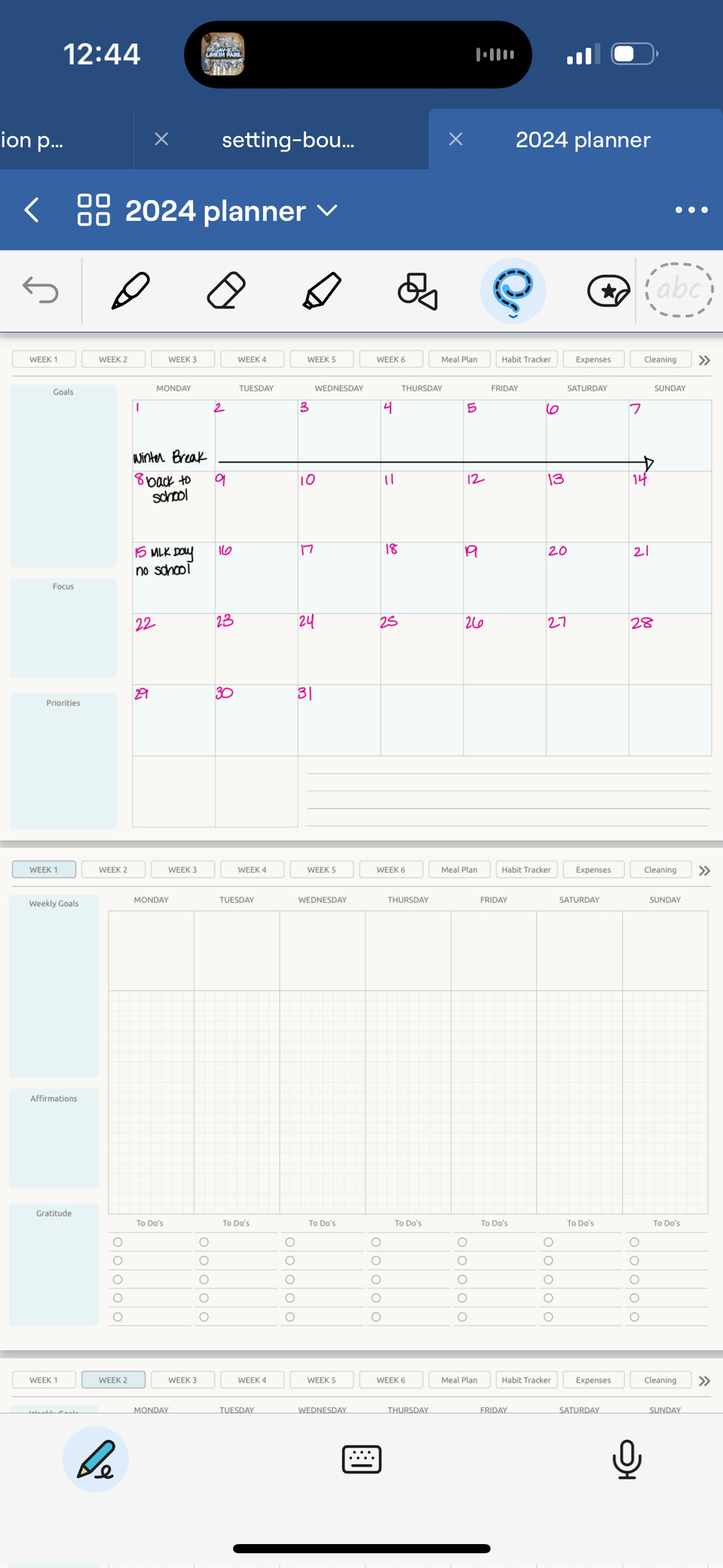 ▸To import your digital planner to Notability: Open the Notability app, click on the top right corner where you will find the ‘import’ tab. This is the sign with an arrow pointing down. Find and tap on your planner to import to the app.