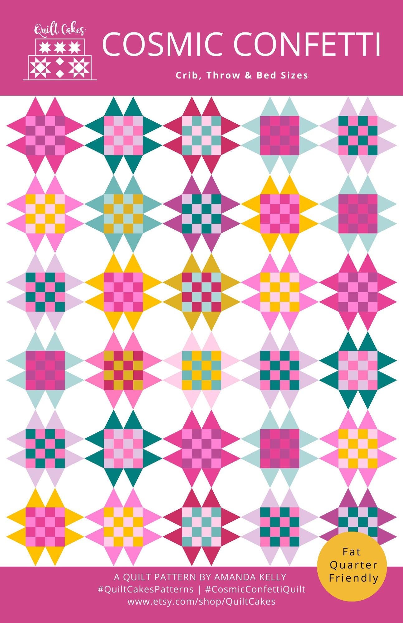 Copyright QuiltCakes 2024. Pattern cannot be reproduced or sold, duplication is prohibited. Quilts made using the Cosmic Confetti Quilt pattern may be sold as long as credit is given.