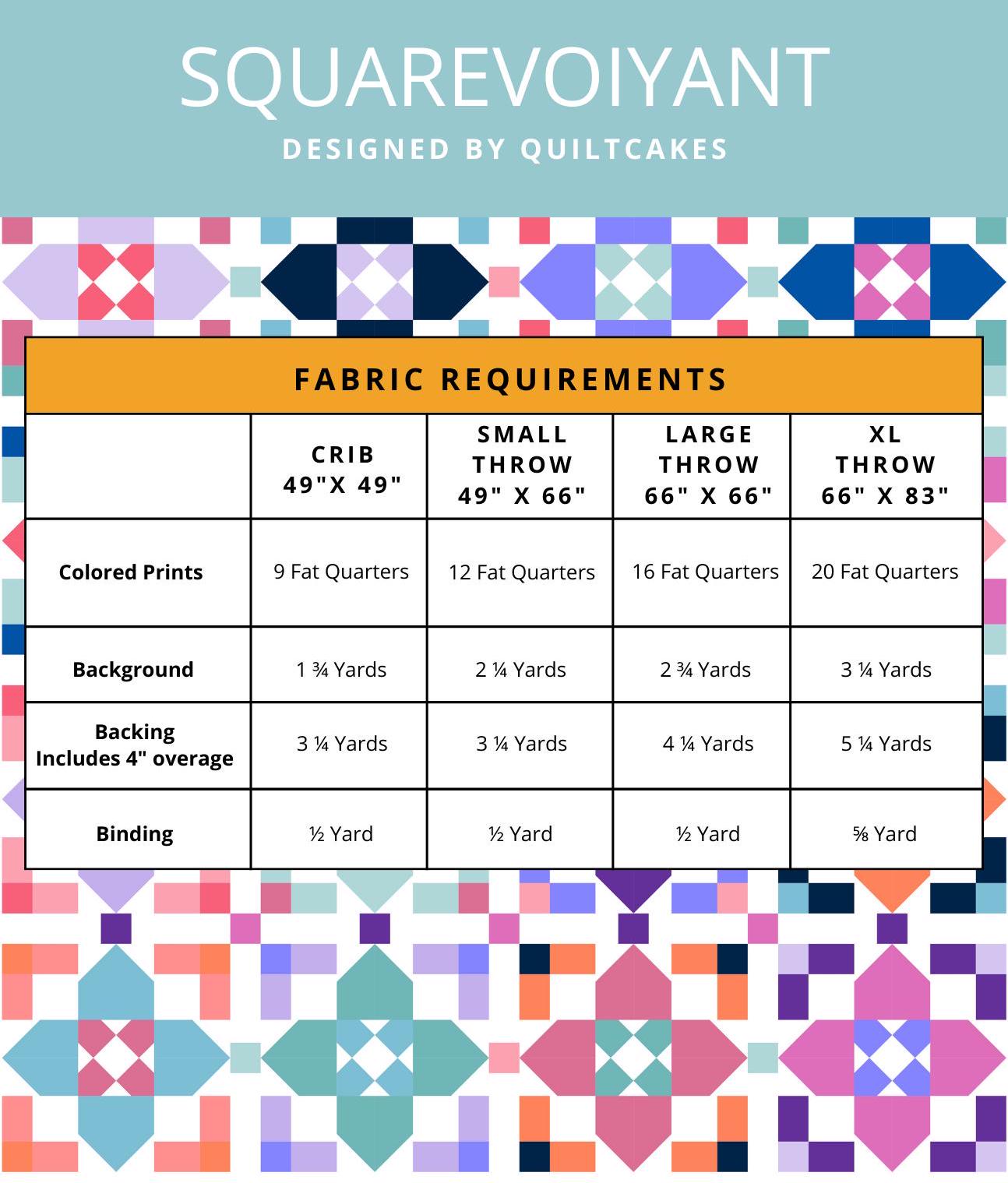 Copyright QuiltCakes 2023. Pattern cannot be reproduced or sold, duplication is prohibited. Quilts made using the Squarevoiyant Quilt pattern may be sold as long as credit is given.