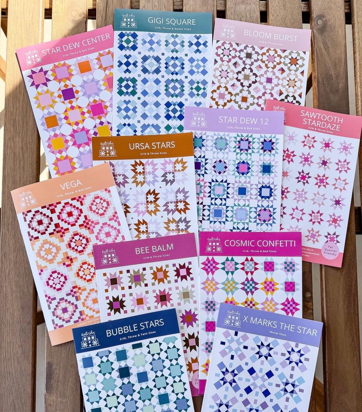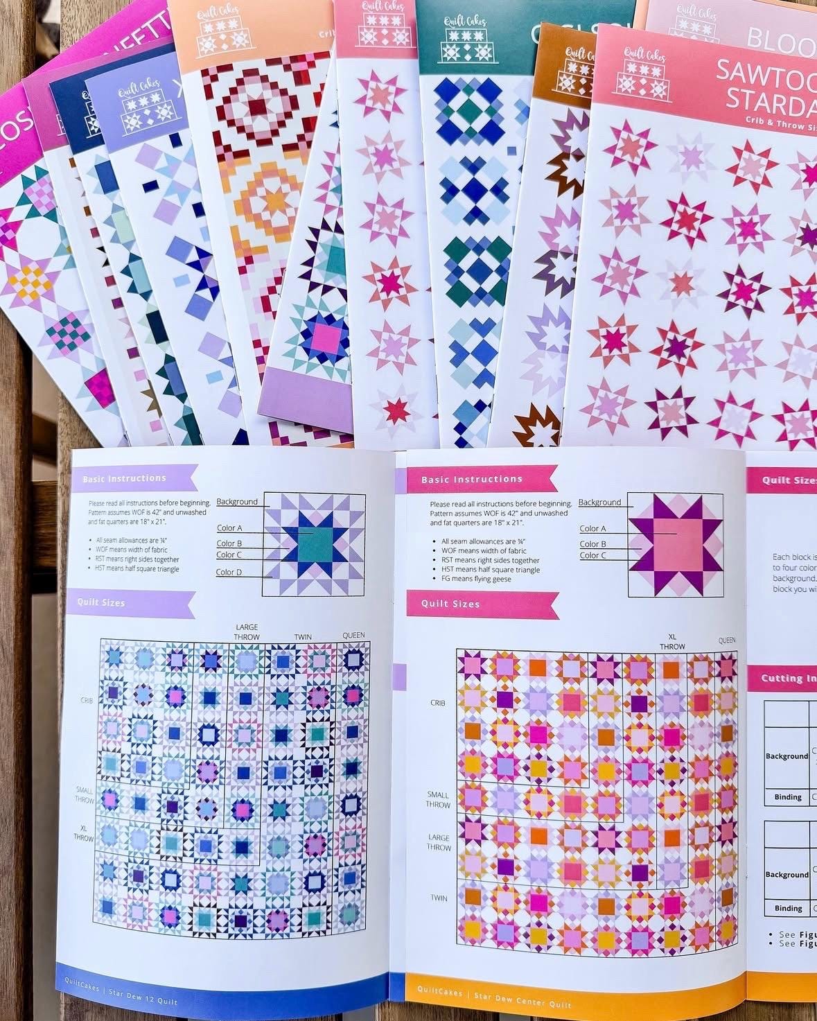 QuiltCakes quilt patterns are perfect for the beginner quilter to the advanced. The patterns are a modern twist on traditional blocks that allow the use of precuts such as 5" squares, fat eighths, and fat quarters making patterns ideal for shops who create kits.