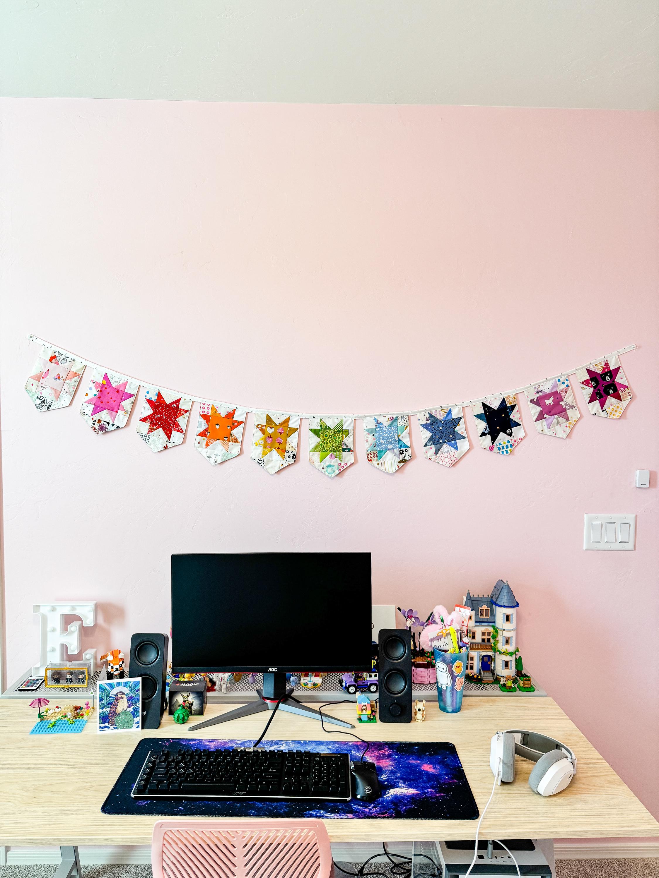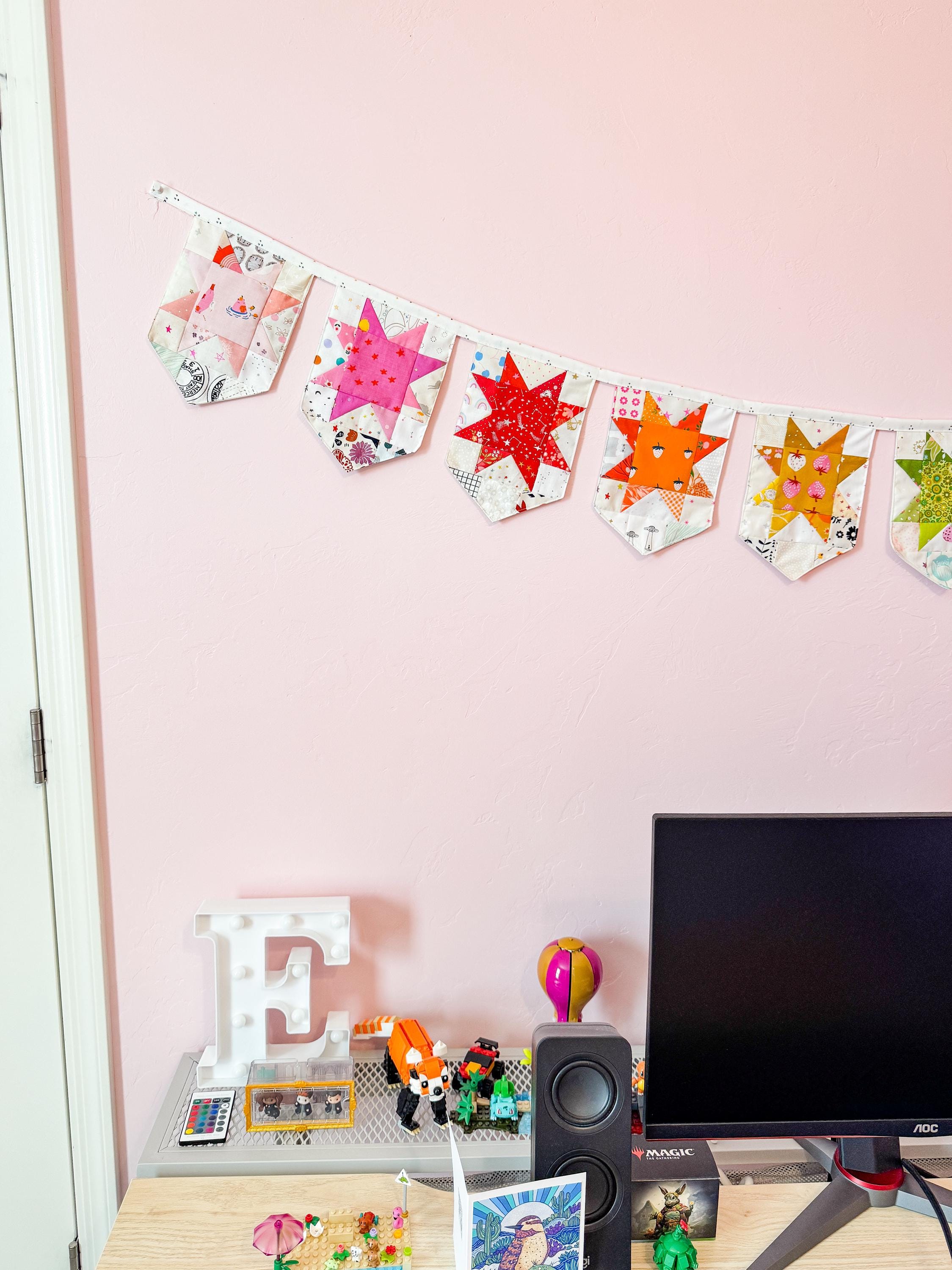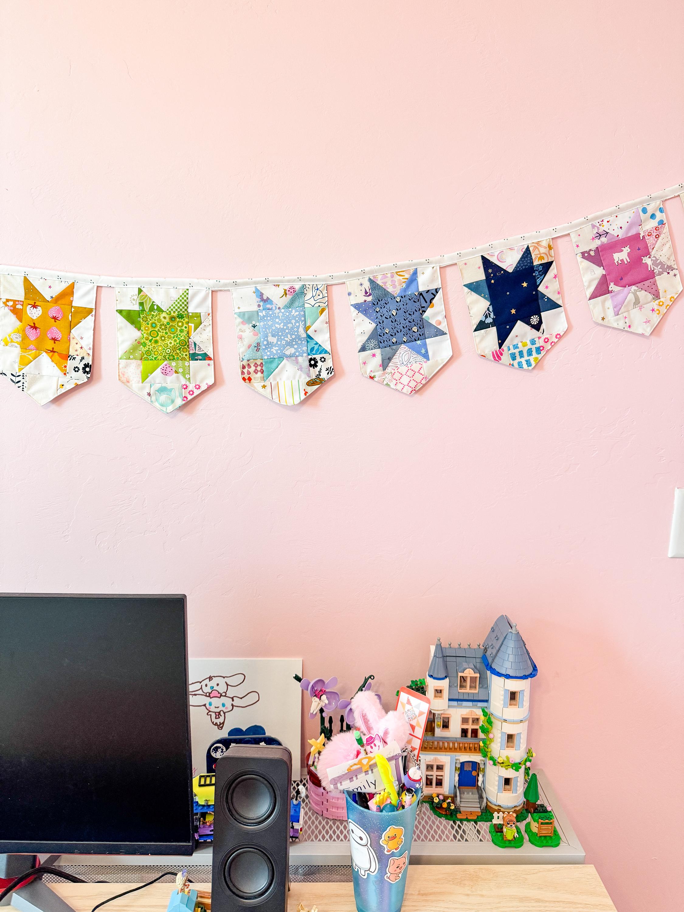 Upon purchase you will receive one PDF file. This file includes instructions on how to make a 6" star (along with a bonus FPP pattern of a sawtooth star) and assemble it as a pennant. Fabric requirements are not included as this project is great for orphan blocks and scraps. WOF strips are needed for the pennant binding/strings.