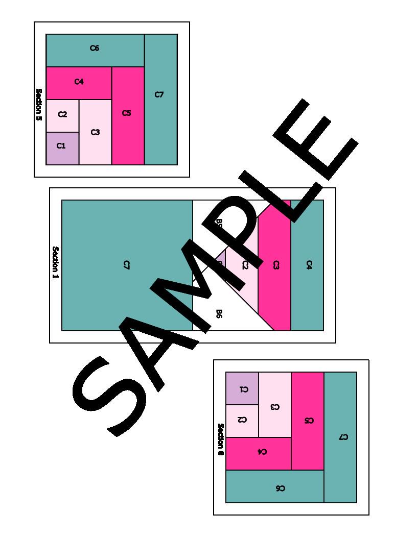 The block comes with with alpha/numbered sections for sewing the pattern together along with sections labeled for ease of sewing. Block finishes at 8" x 10"