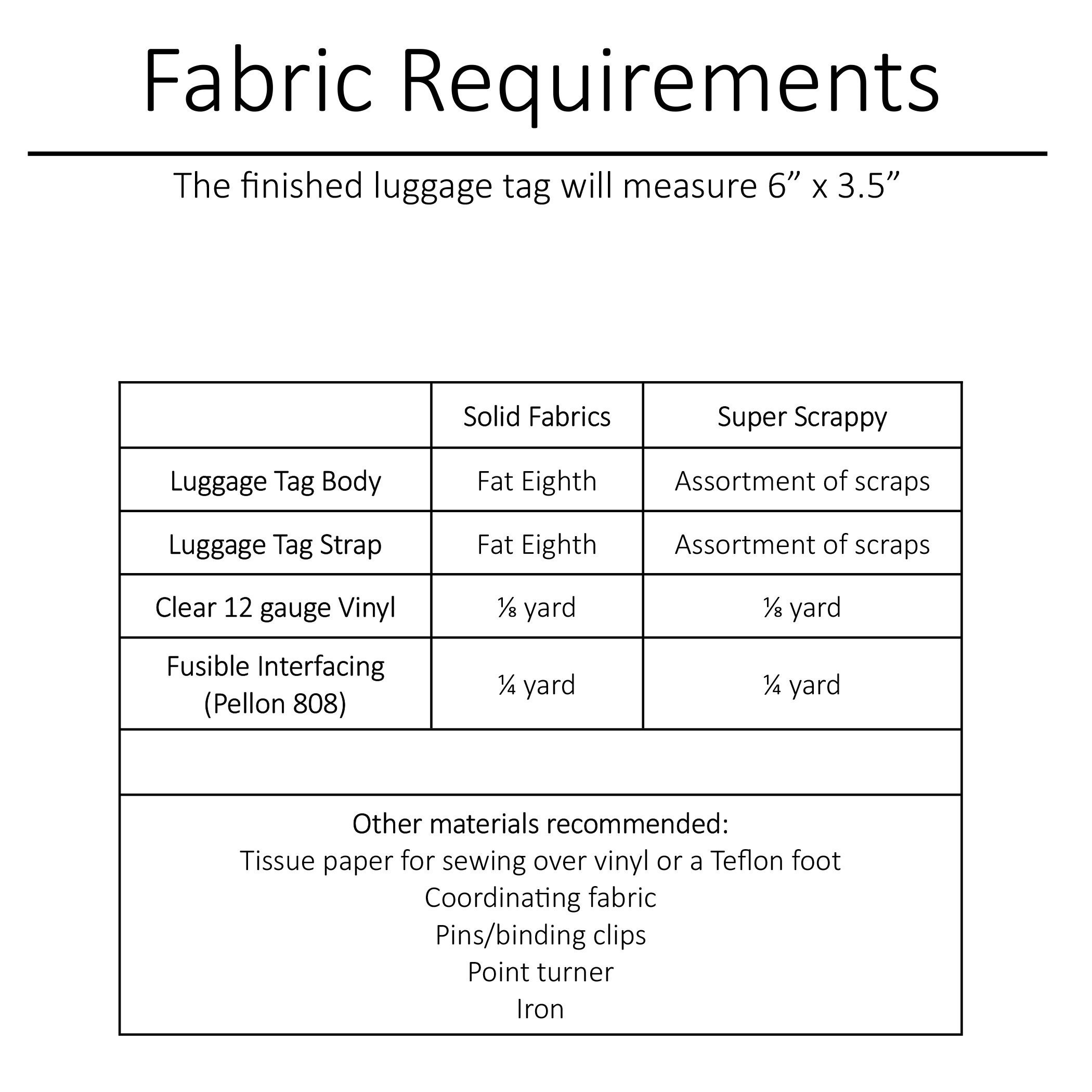 -Diagrams for cutting, piecing, and assembling your luggage tag